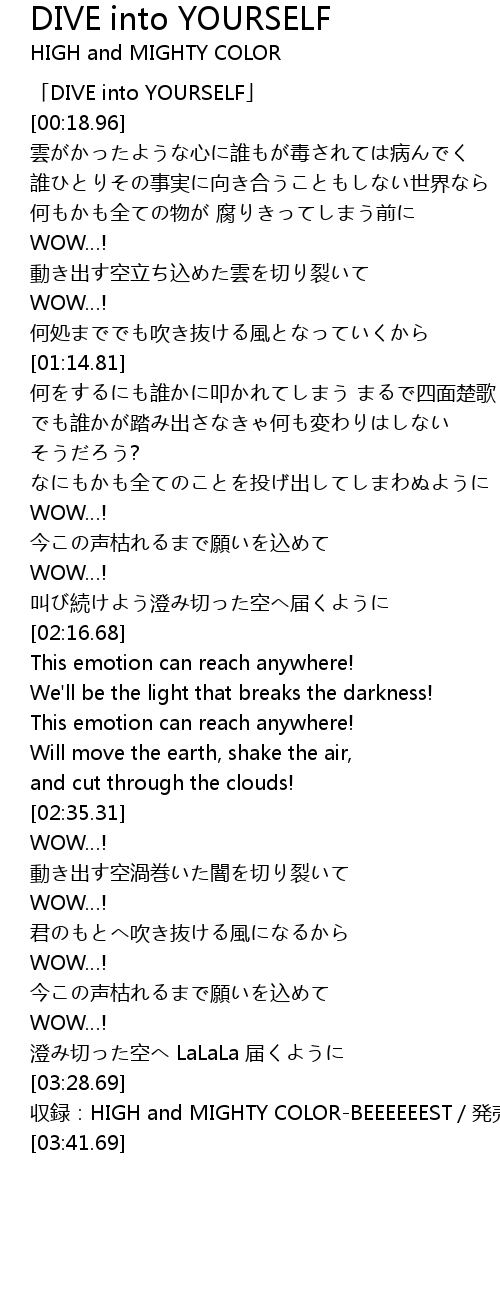 | [00:00.00] | 「DIVE into YOURSELF」 |