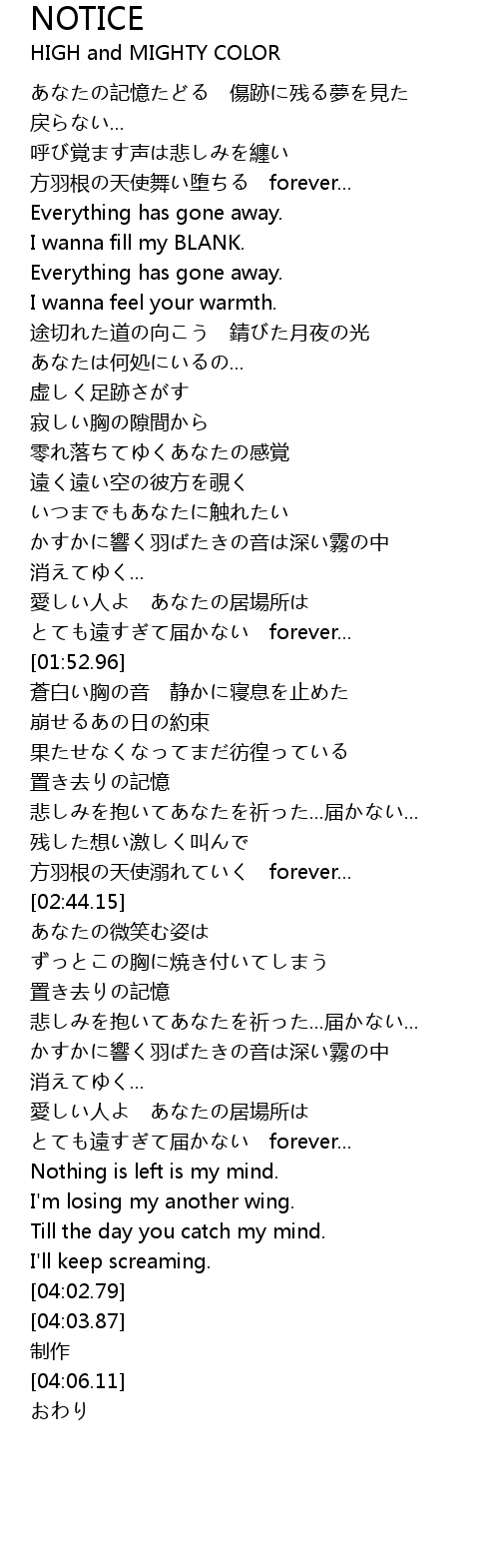 | [03:43.92] | とても遠すぎて届かない forever... |