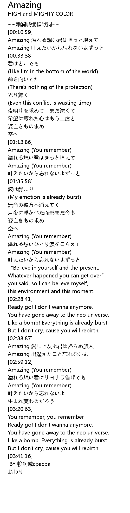 | [03:00.03] | Amazing You remember |