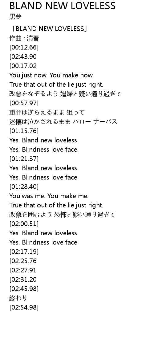 | [02:32.71][02:25.76][02:18.92] | Yes. Bland new loveless |