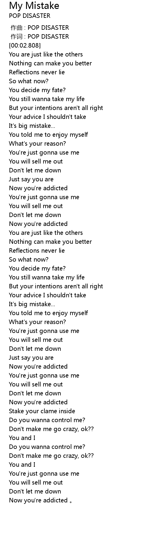 | [00:00.00] | zuò qǔ : POP DISASTER |