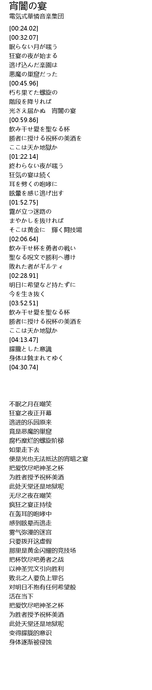 | [00:53.63] | 光さえ届かぬ 宵闇の宴 |