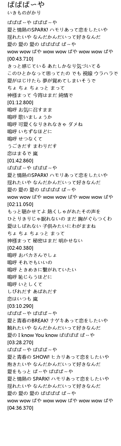 | [03:23.830] | 愛の I know You know ぱぱぱぱ ぱ~や |