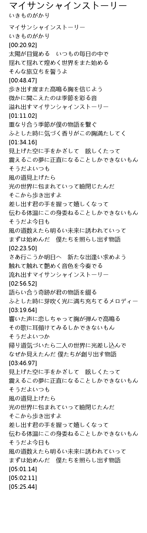 | [02:52.15] | 流れ出すマイサンシャインストーリー |