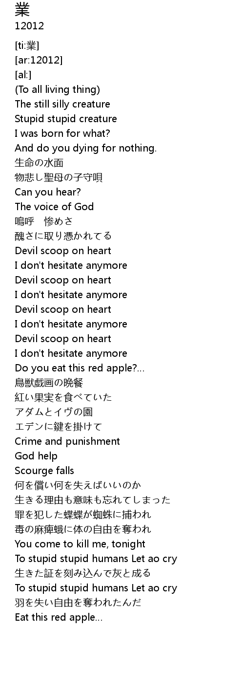 | [02:59.99] | To stupid stupid humans Let ao cry |