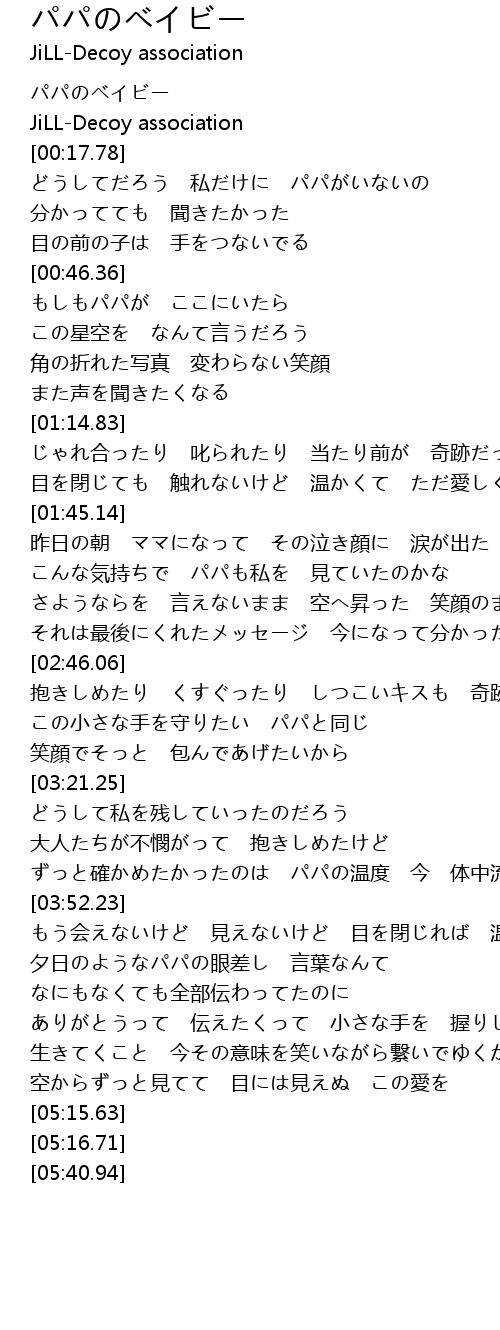 | [00:19.30] | どうしてだろう 私だけに パパがいないの |
