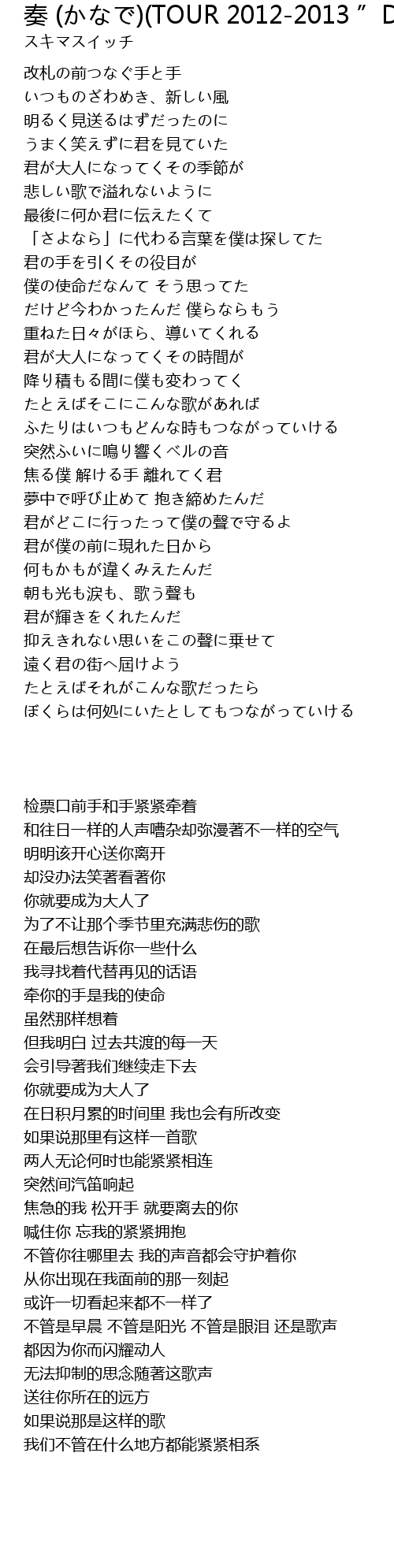 | Song | 奏 (かなで)(TOUR 2012-2013 ”DOUBLES ALL JAPAN”) |