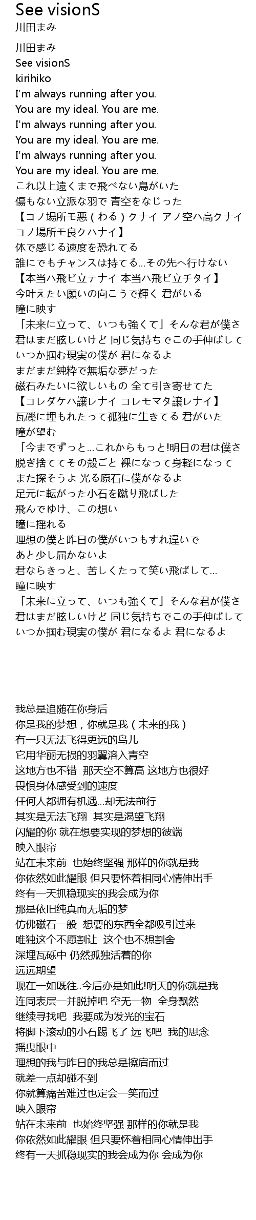 | [00:06.12] | You are my ideal. You are me. |