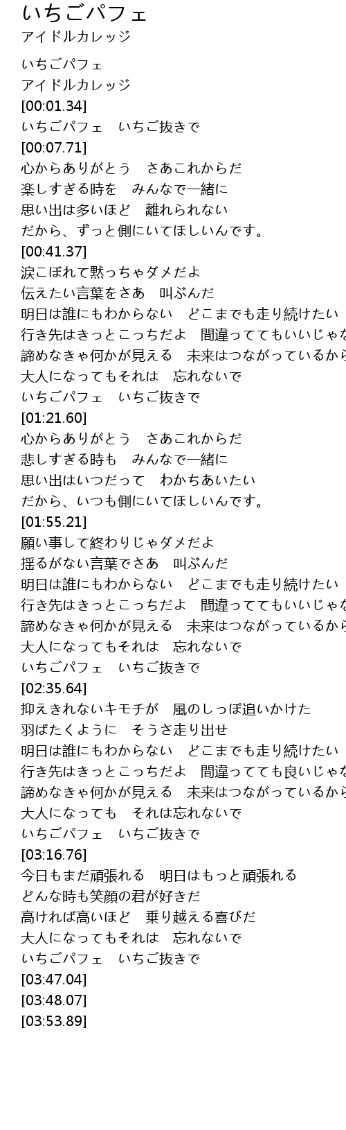 | [03:11.22] | いちごパフェ いちご抜きで |