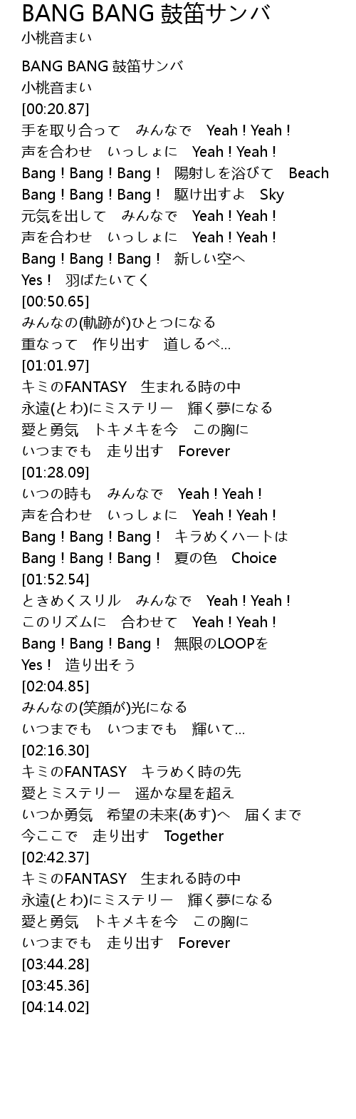 | [00:00.00] | BANG BANG 鼓笛サンバ |
