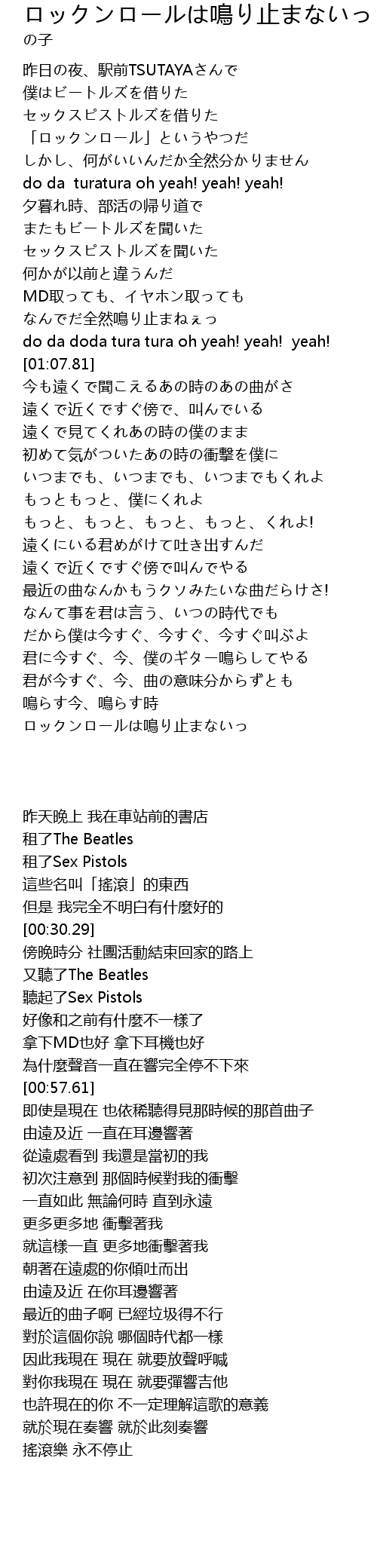 | [02:52.97] | ロックンロールは鳴り止まないっ |