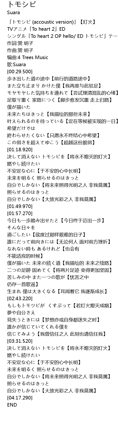 | [00:24.470] | 「トモシビ (accoustic version)」【灯火】 |