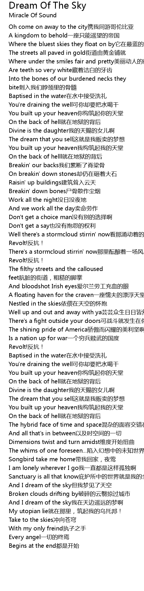 | [02:29] | Nestled in the skies依偎在天空的怀抱 |