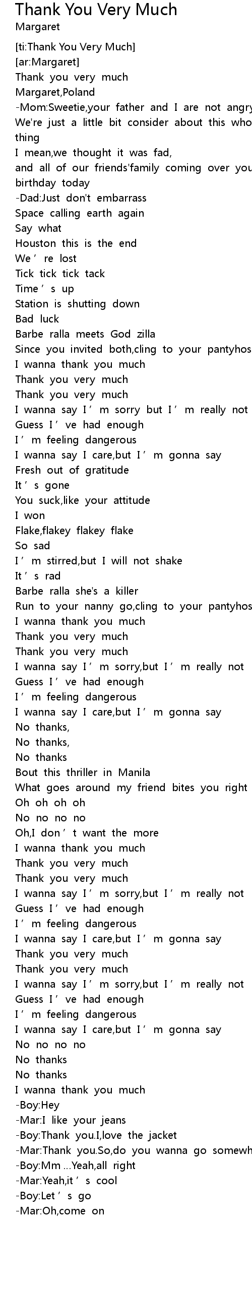 | [ti:Thank You Very Much] | |
