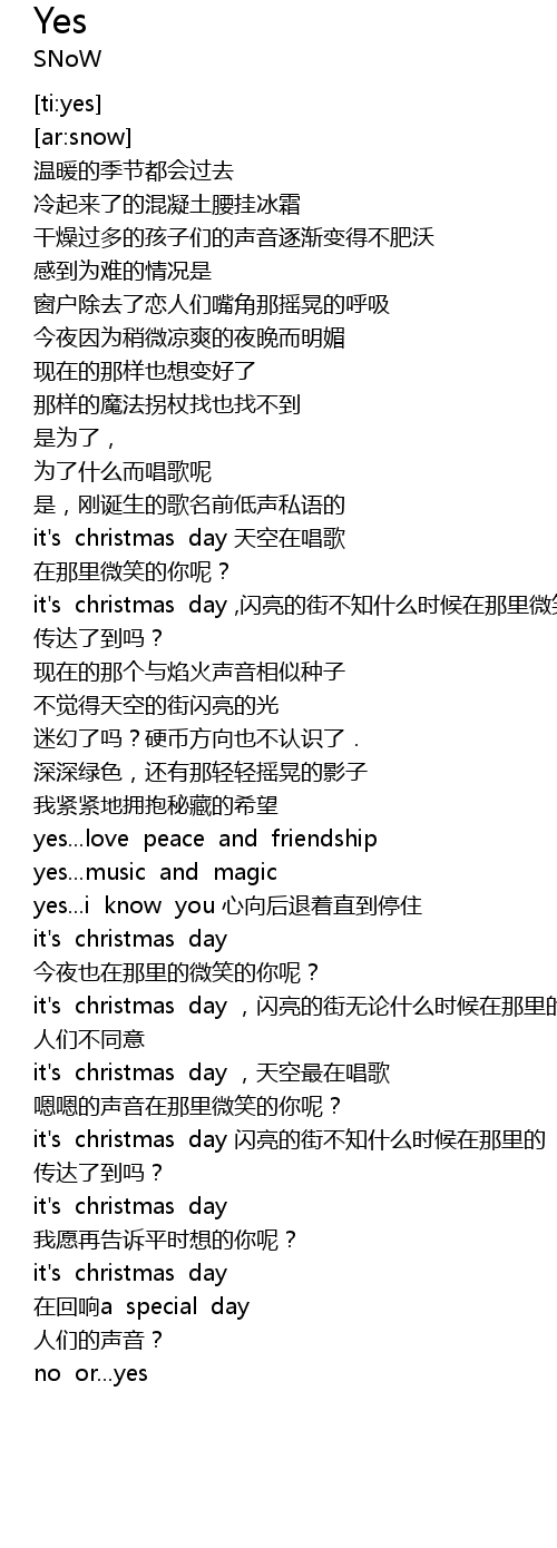 | [01:39.02] | it's christmas day ,闪亮的街不知什么时候在那里微笑 |