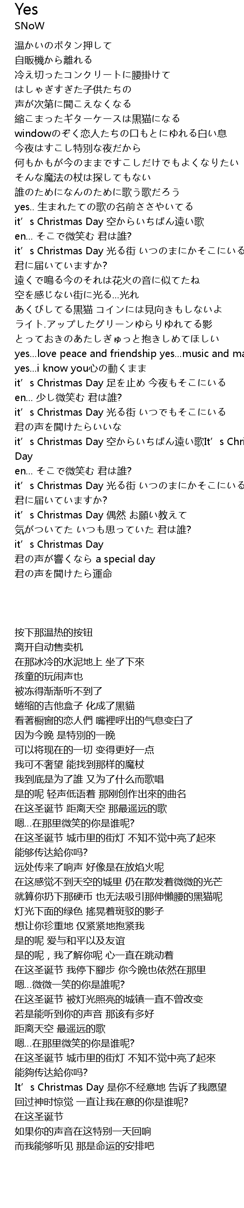 | [03:20.52] | it’s Christmas Day 空からいちばん遠い歌It’s Christmas Day |