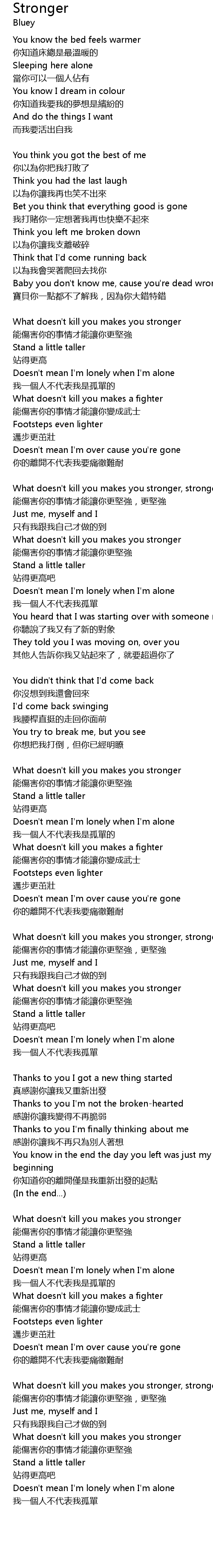 | What doesn' t kill you makes you stronger, stronger | |