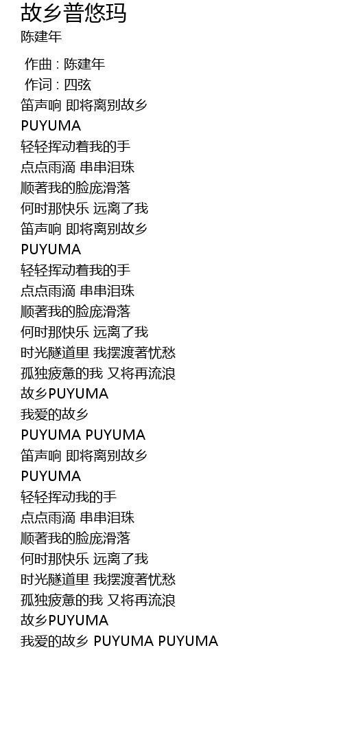 | [04:13.74] | 故乡PUYUMA |