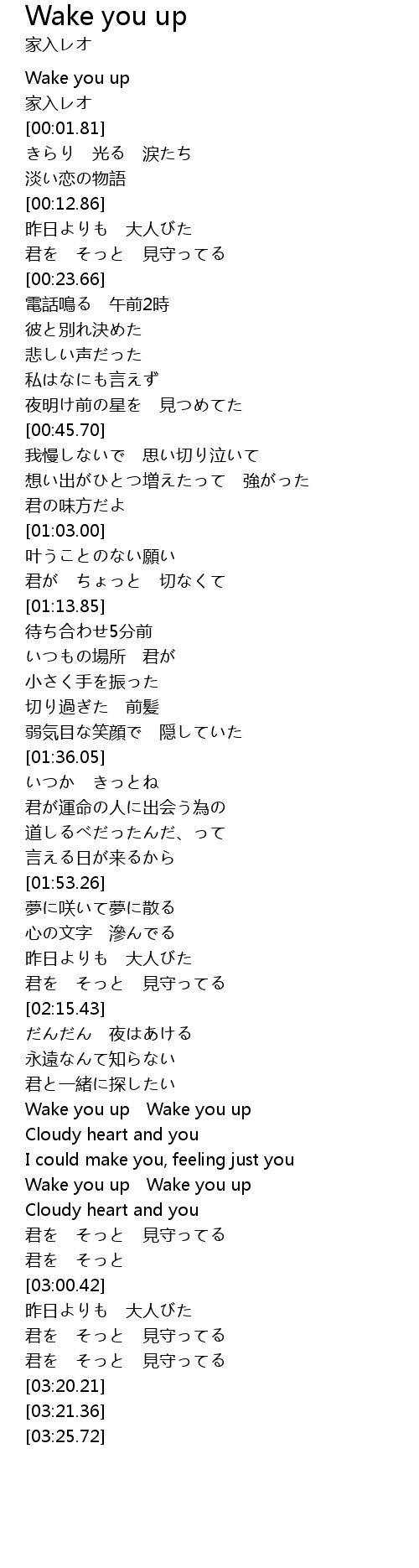 | [00:41.64] | 夜明け前の星を 見つめてた |