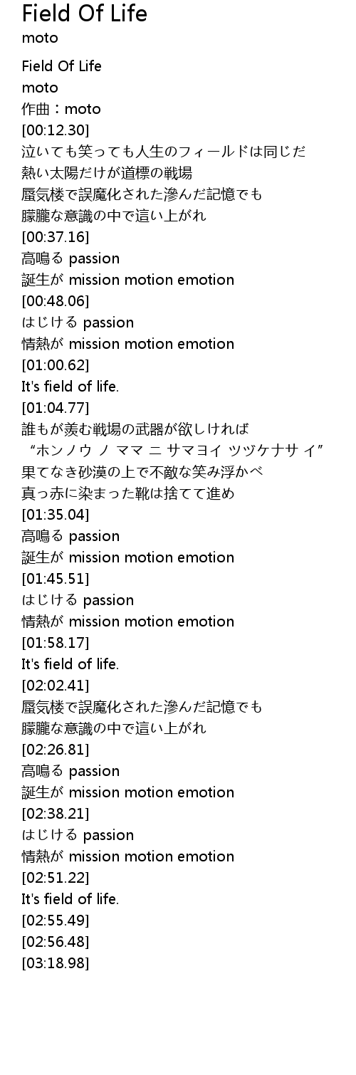 | [00:13.32] | 泣いても笑っても人生のフィールドは同じだ |