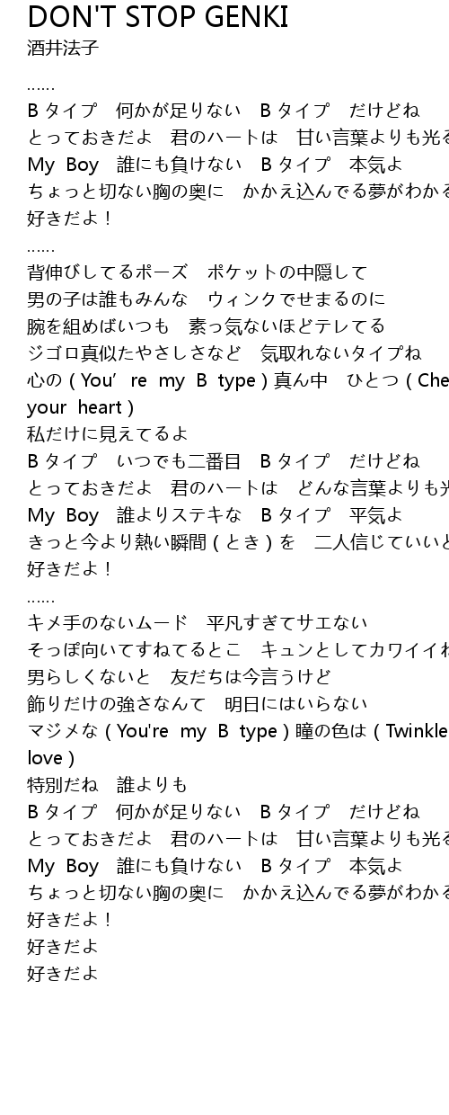| [02:53:75] | マジメな(You're my B type)瞳の色は(Twinkle your love) |