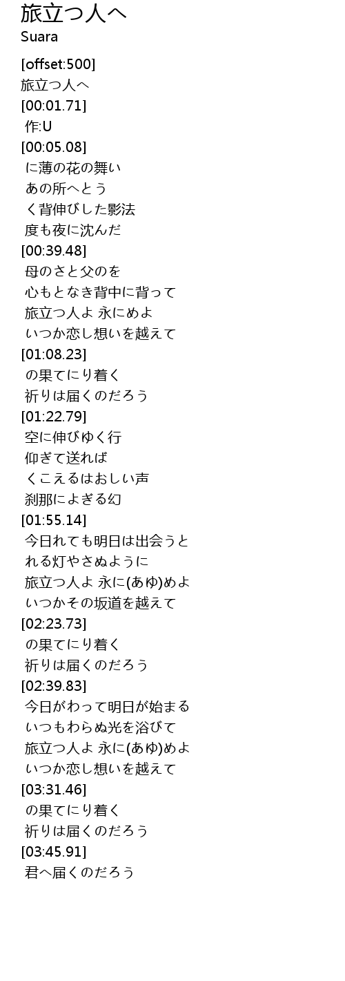 | [00:52.13] | 旅立つ人よ 永にめよ |