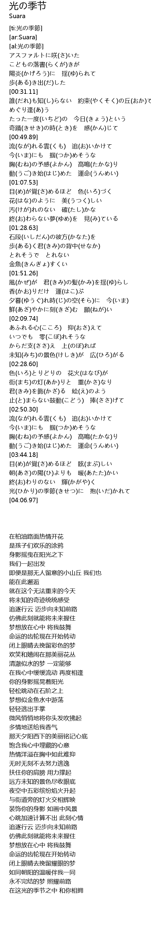 | [03:57.75] | 光(ひかり)の季節(きせつ)に 抱(いだ)かれて |