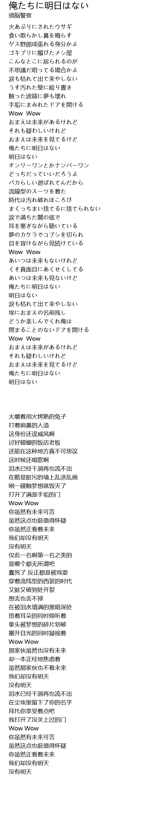 | [00:42.54] | うす汚れた壁に殴り書き |