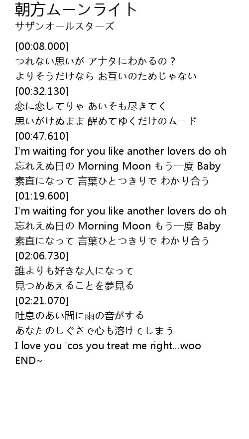 | [00:55.760] | 忘れえぬ日の Morning Moon もう一度 Baby |