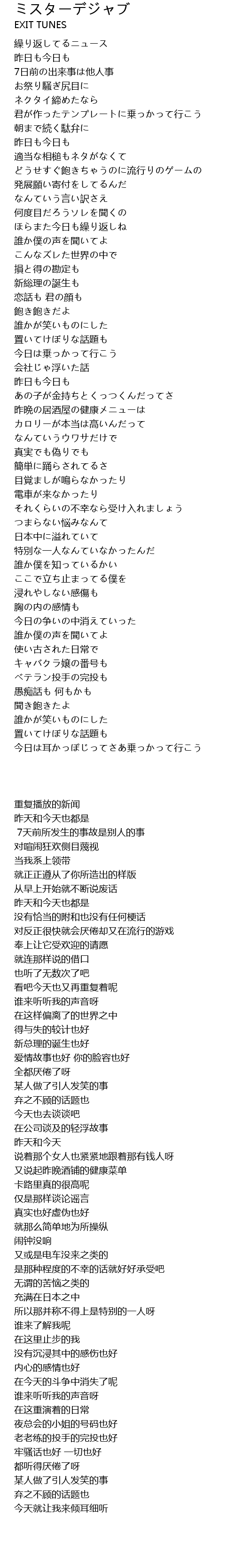 | Song | ミスターデジャブ |