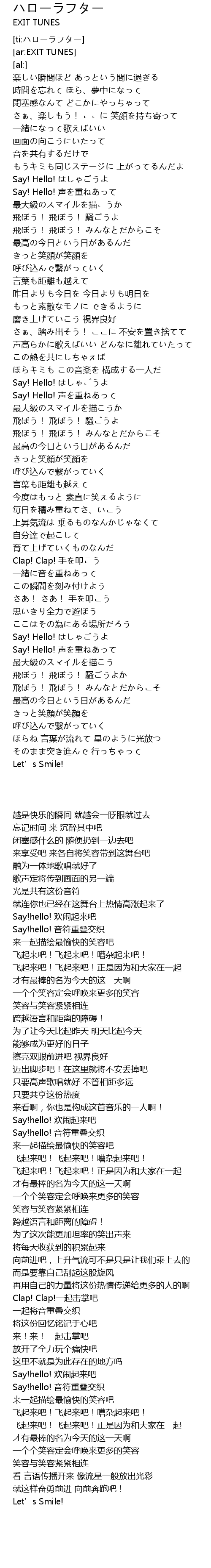| [02:14.75] | Say! Hello! shēng zhòng |