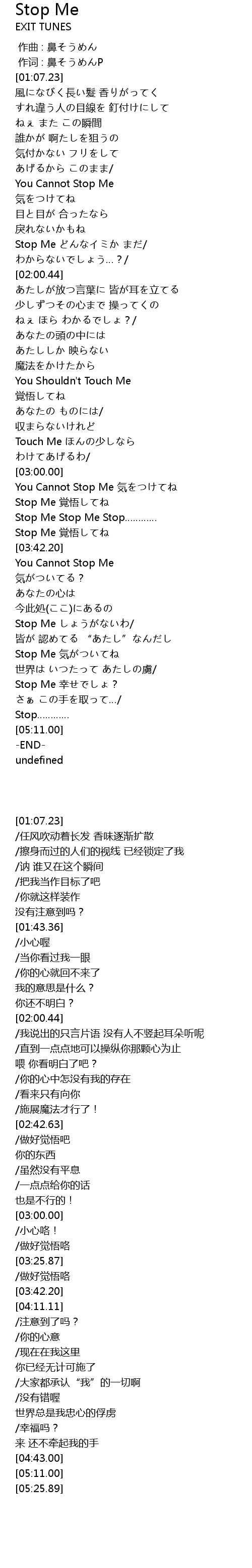 | [03:20.32] | Stop Me jué wù |