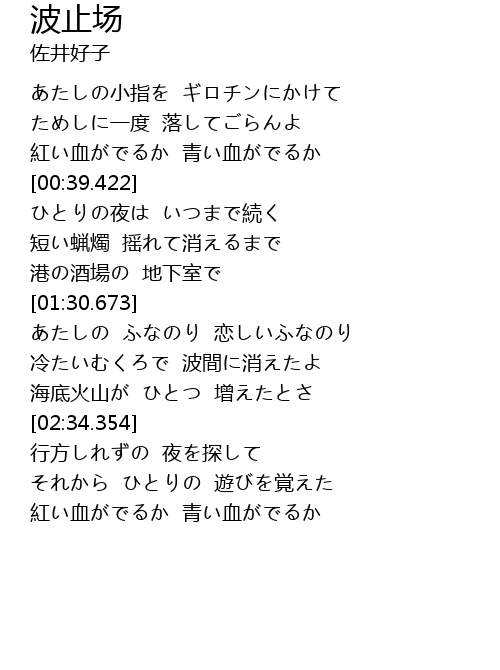 | [00:00.673] | あたしの小指を ギロチンにかけて |