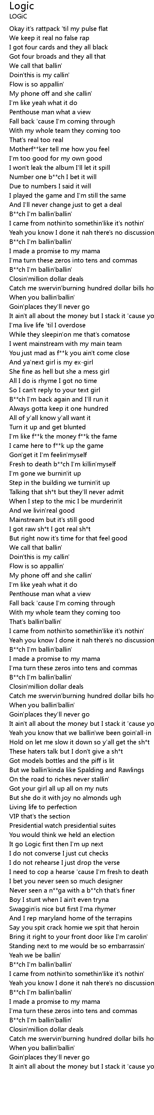 B**ch I'm ballin'ballin' |