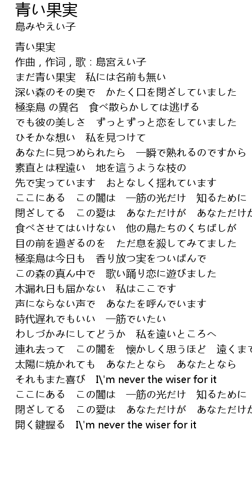 | [00:21.87] | まだ青い果実 私には名前も無い |