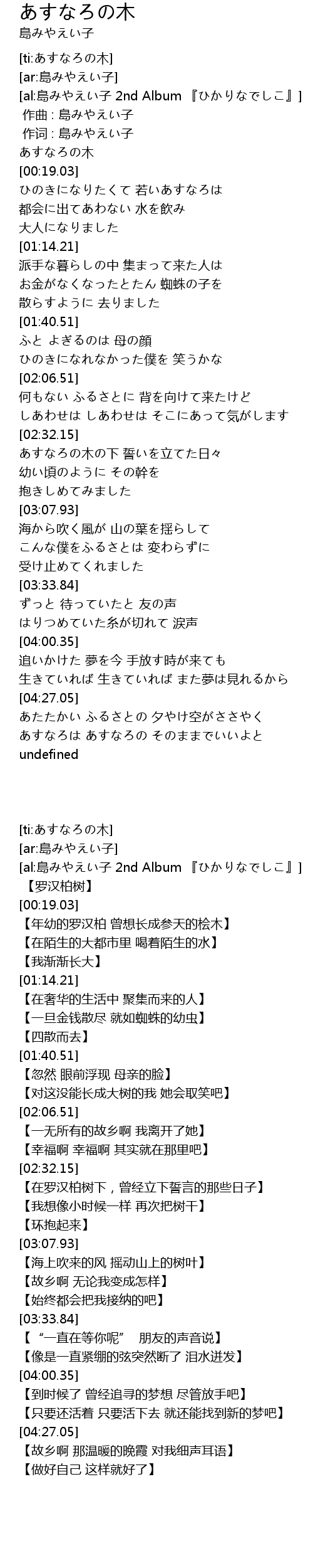 | [00:50.66] | ひのきになりたくて 若いあすなろは |