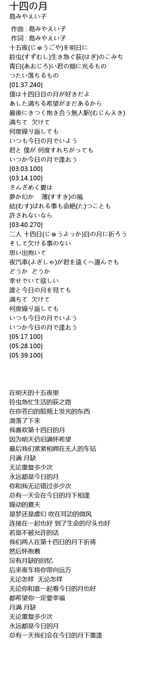 | [01:38.740] | 僕は十四日目の月が好きだよ |