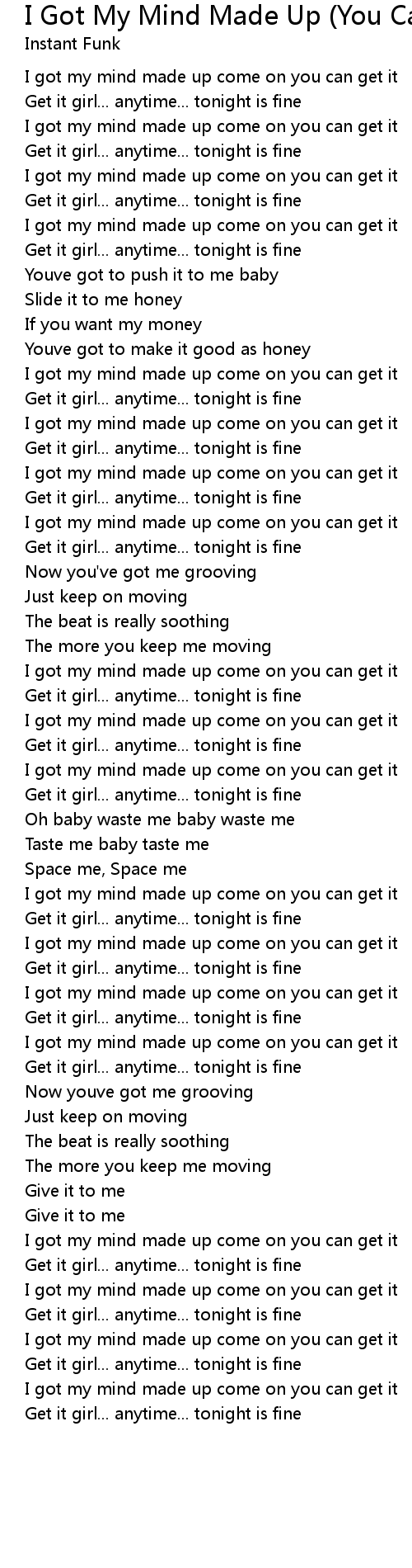 I got my mind made up come on you can get it |