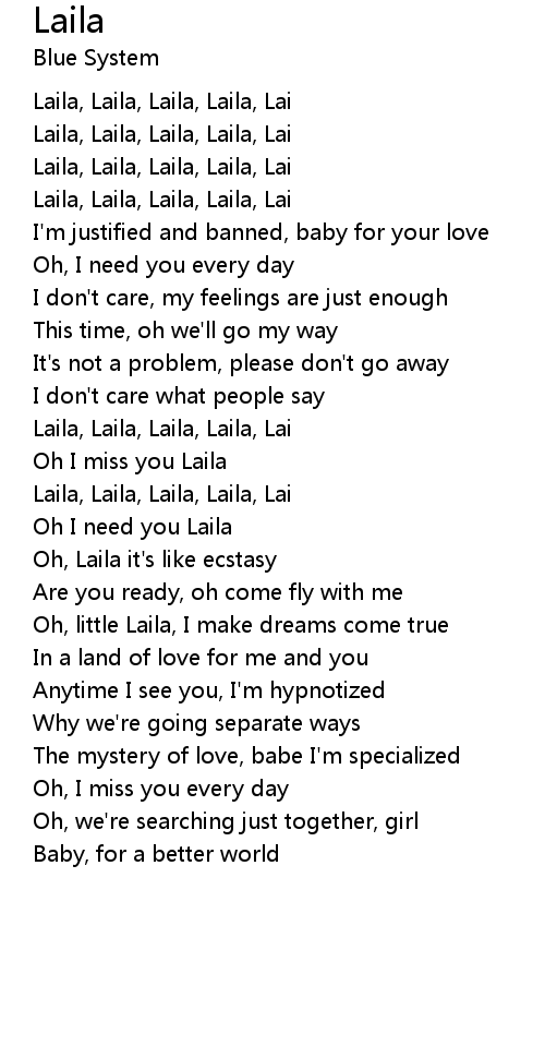 Laila, Laila, Laila, Laila, Lai |