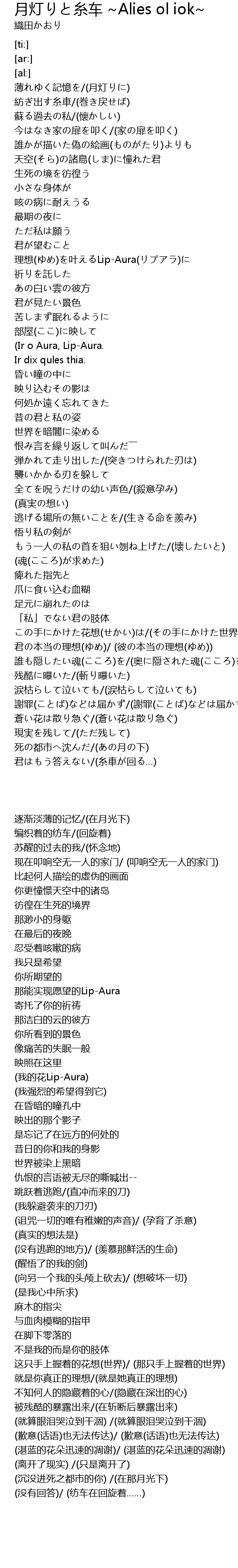 | Song | 月灯りと糸车 ~Alies ol iok~ |