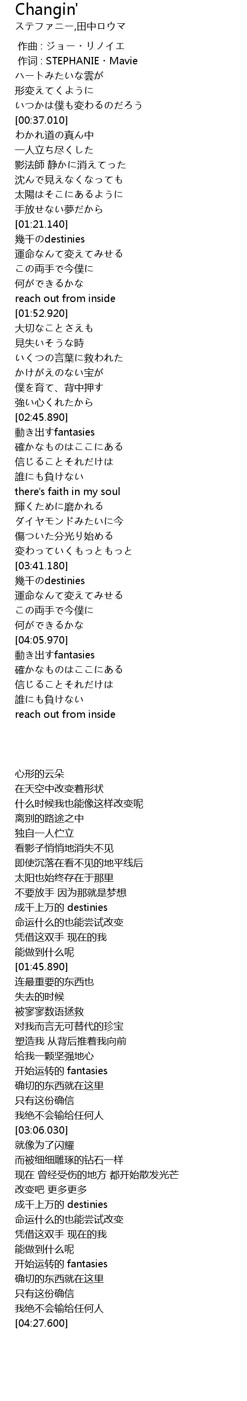 | [03:32.160] | 変わっていくもっともっと |