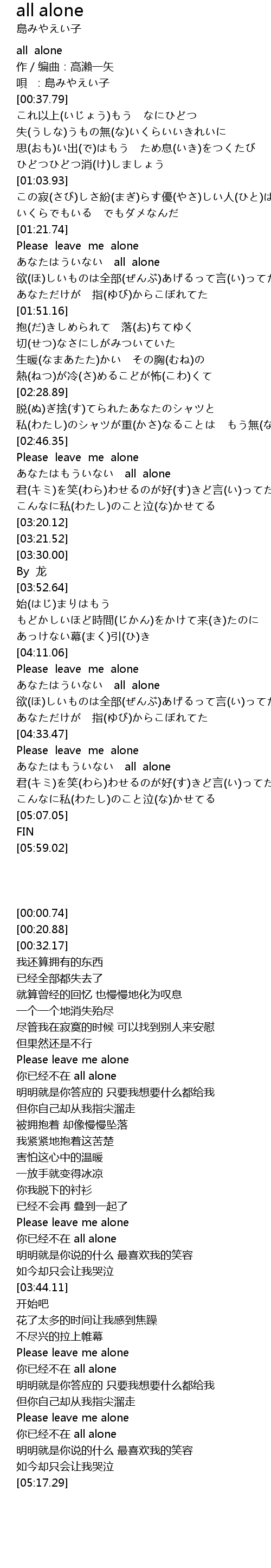 | [00:00.74] | all alone |