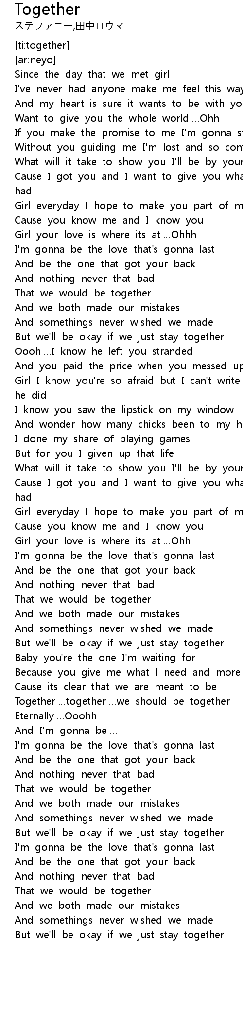 | [03:50.342] | But we' ll be okay if we just stay together |