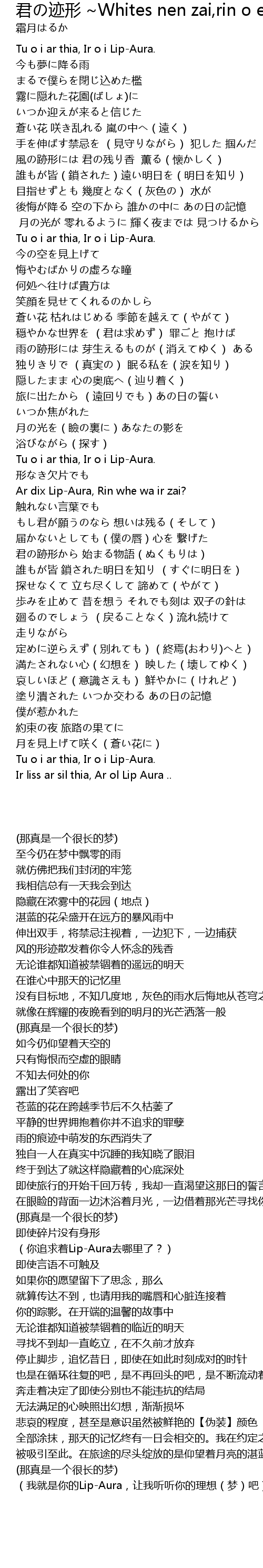 | [03:33.85] | Ar dix Lip-Aura, Rin whe wa ir zai? |