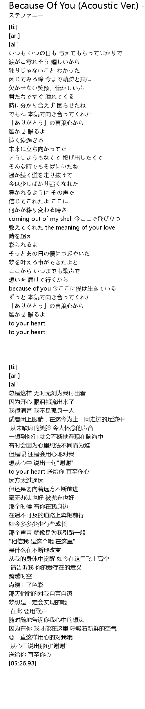 | [04:55.03] | because of you 今ここに僕は生きている |