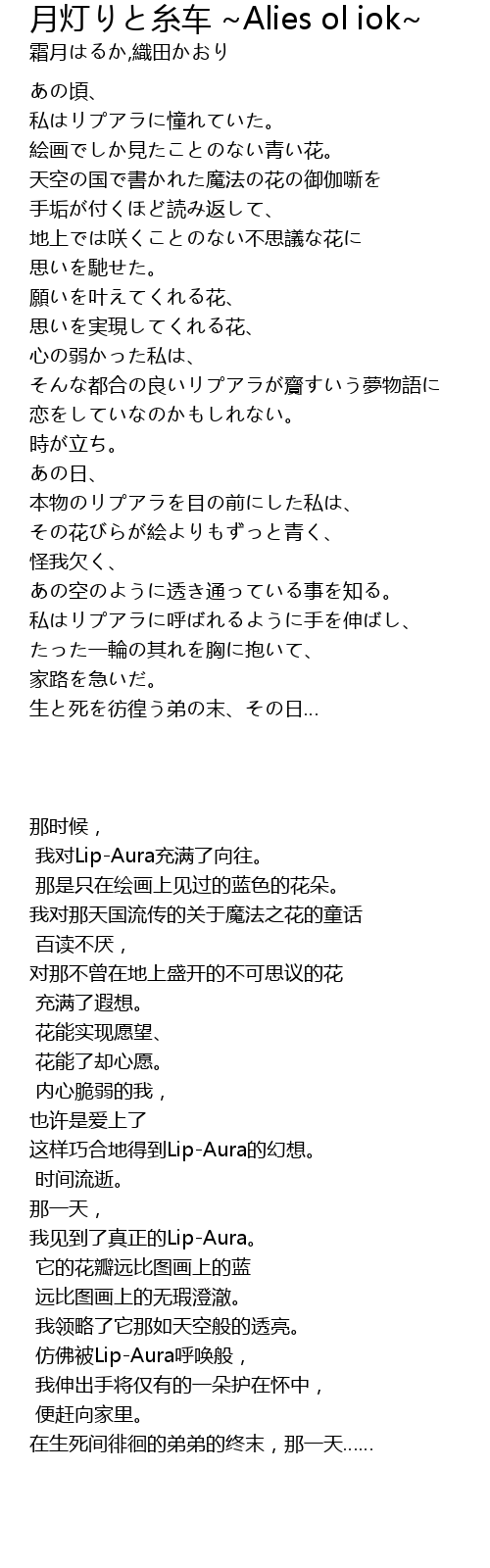 | [00:10.45] | 天空の国で書かれた魔法の花の御伽噺を |