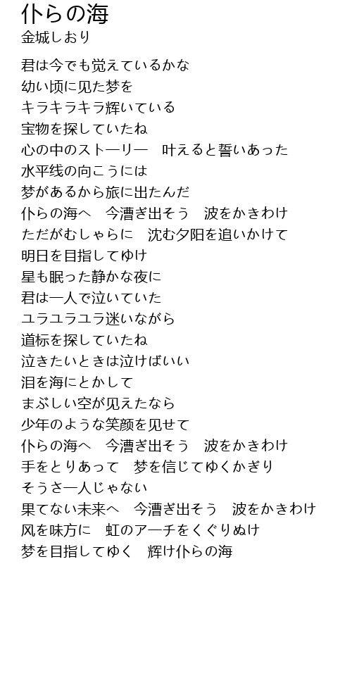 | 梦を目指してゆく 辉け仆らの海 |