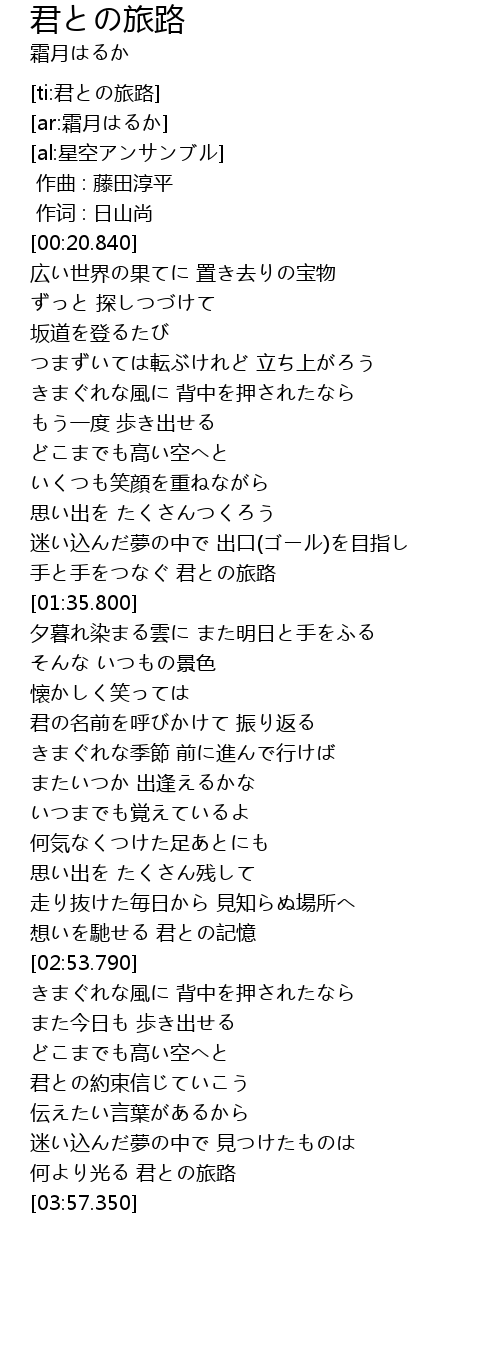 | [01:25.350] | 手と手をつなぐ 君との旅路 |