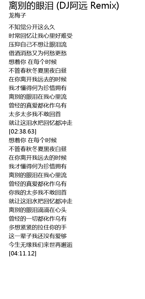 | [03:36.05] | 离别的眼泪滴滴在心头 |