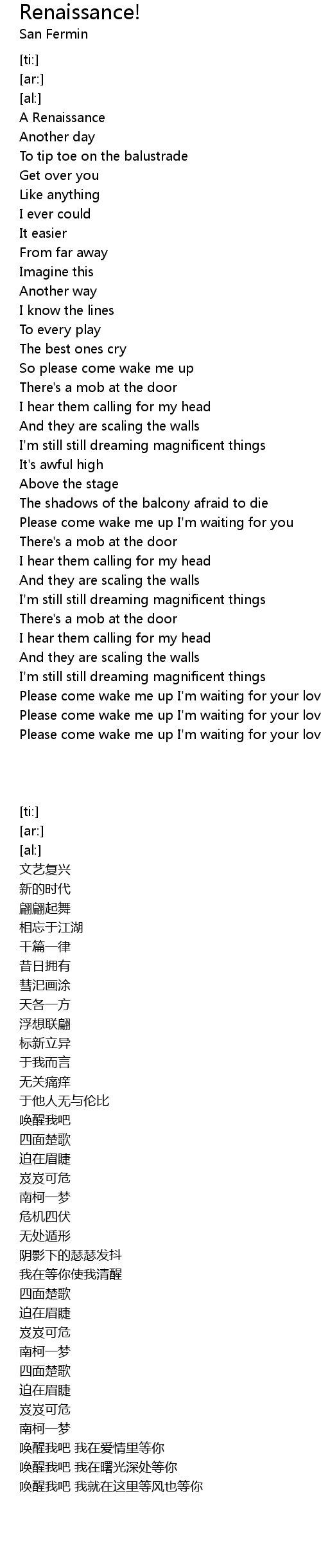 Please come wake me up I'm waiting for you |